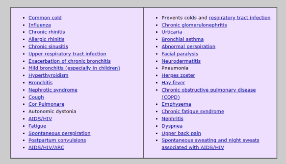 Prevention and treatment of common cold and influenza as well as “summer fever” (acute infection with a fever that occurs in summer rather than during the winter cold/flu season), mainly in children.